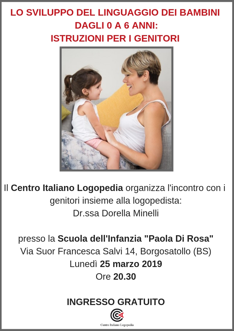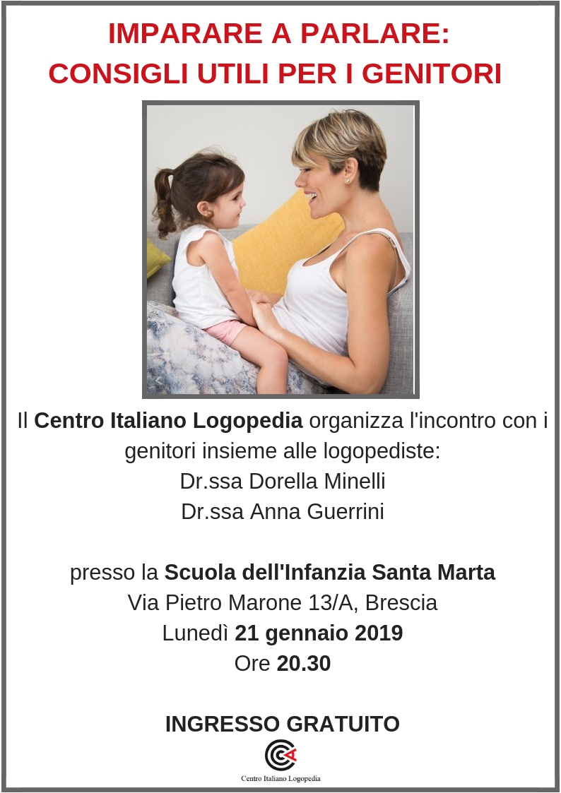 Il Centro Italiano Logopedia organizza l’incontro con i genitori insieme alla logopedista: